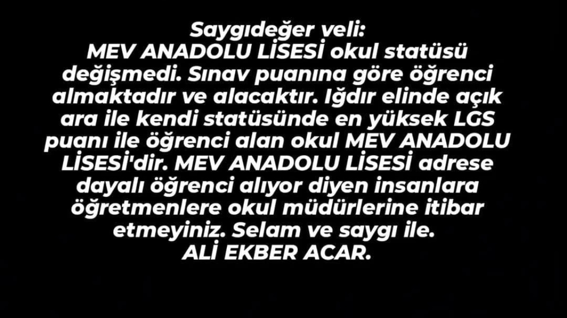 MEV ANADOLU LİSESİ okul statüsü değişmedi.